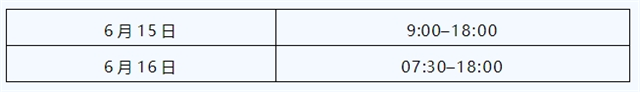 服務(wù)時(shí)間:6月15日 8:00-17:00